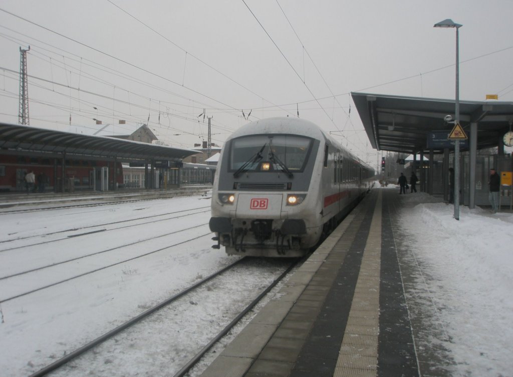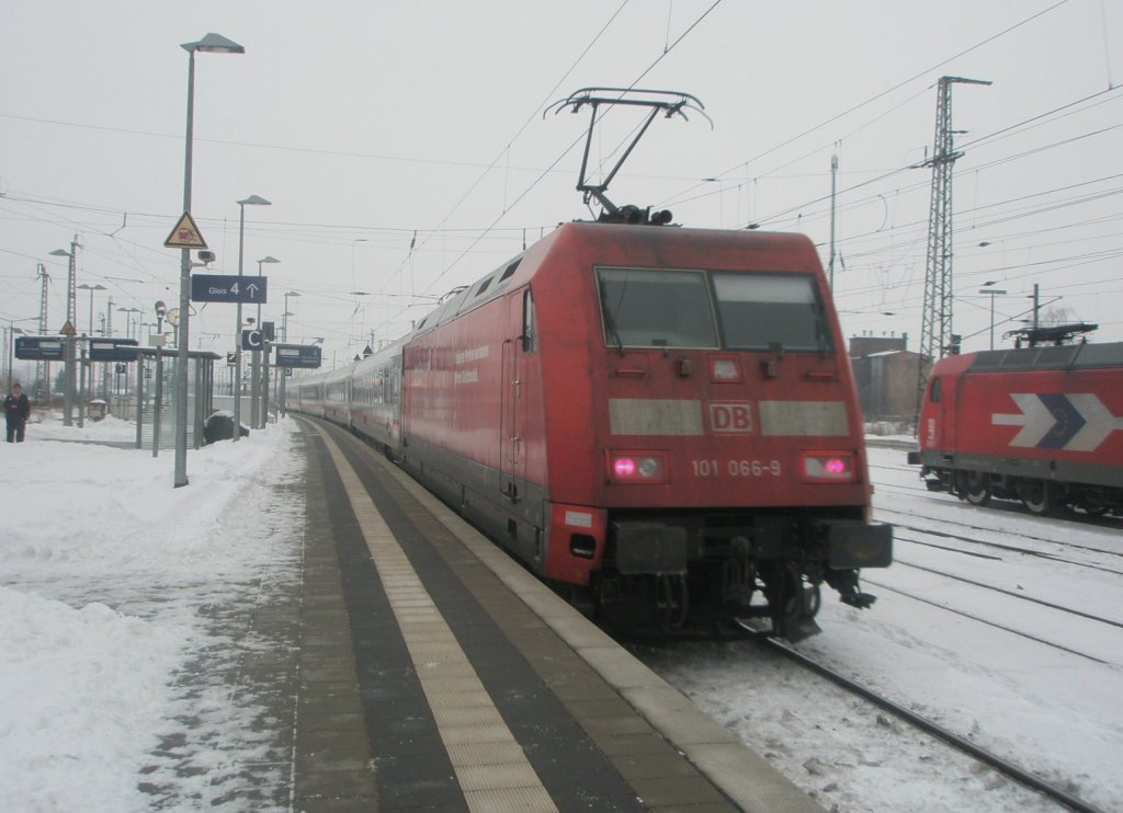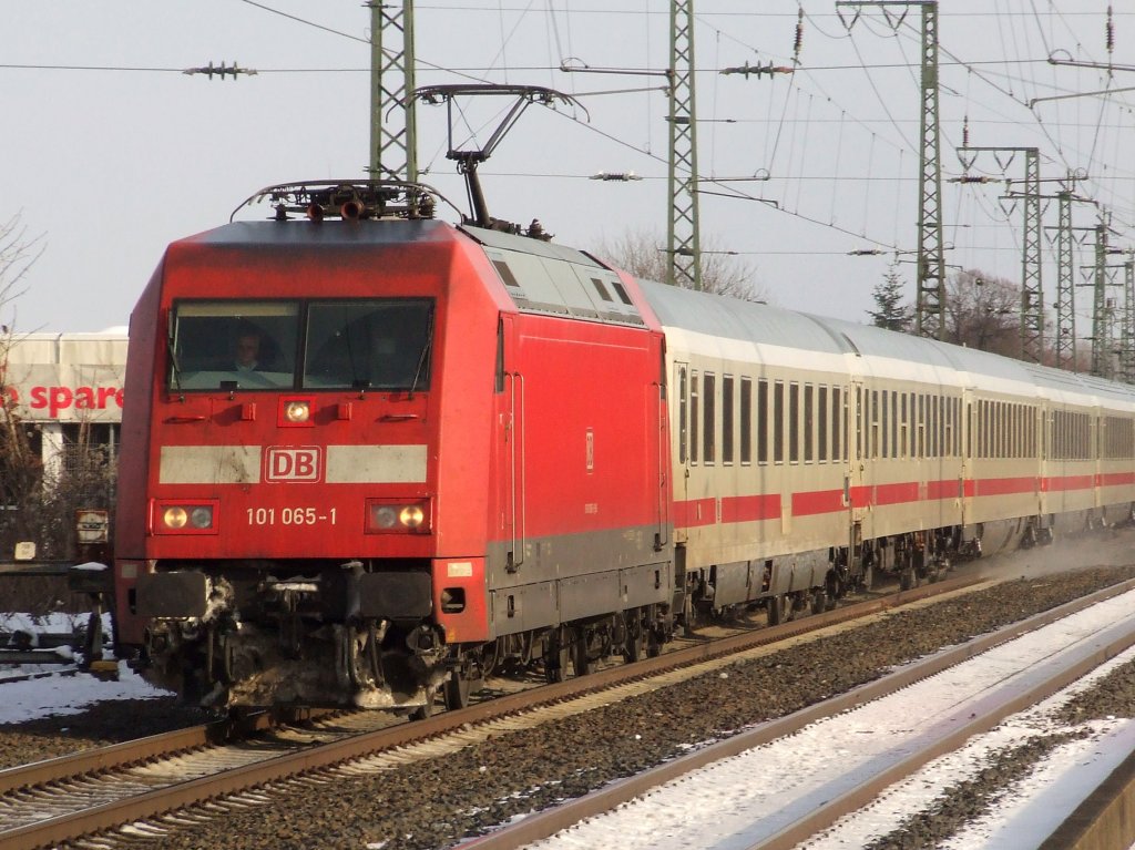 101 065 zieht am 16.01.2010 einen IC durch Oelde in Richtung Hamm (Westf.).