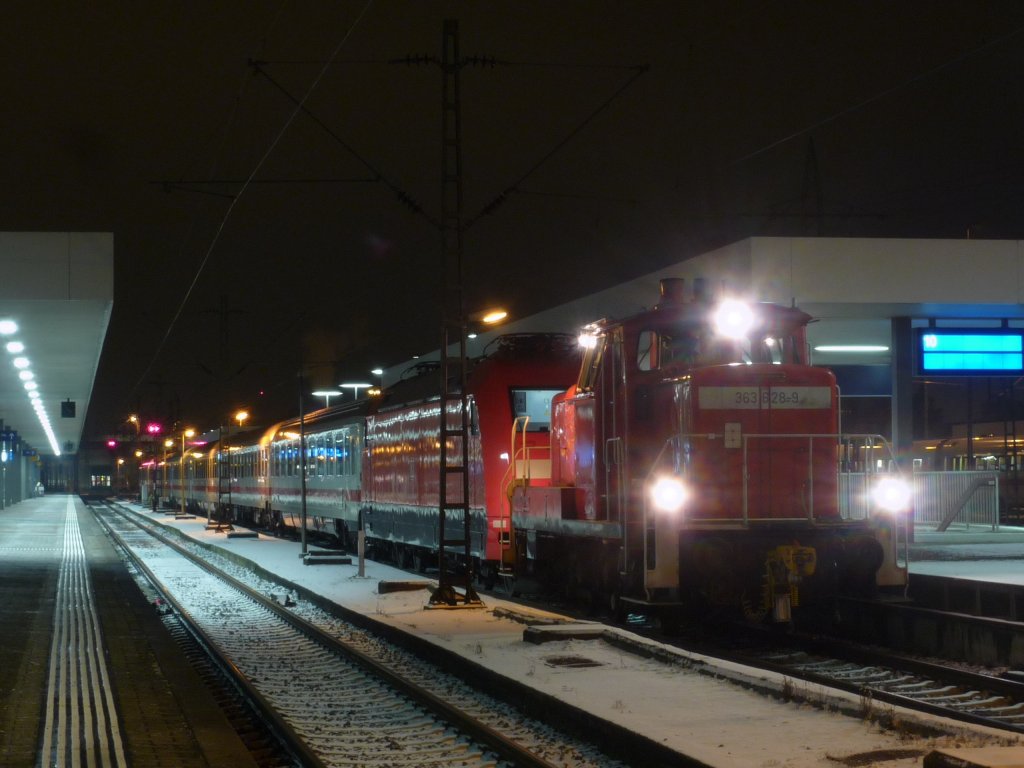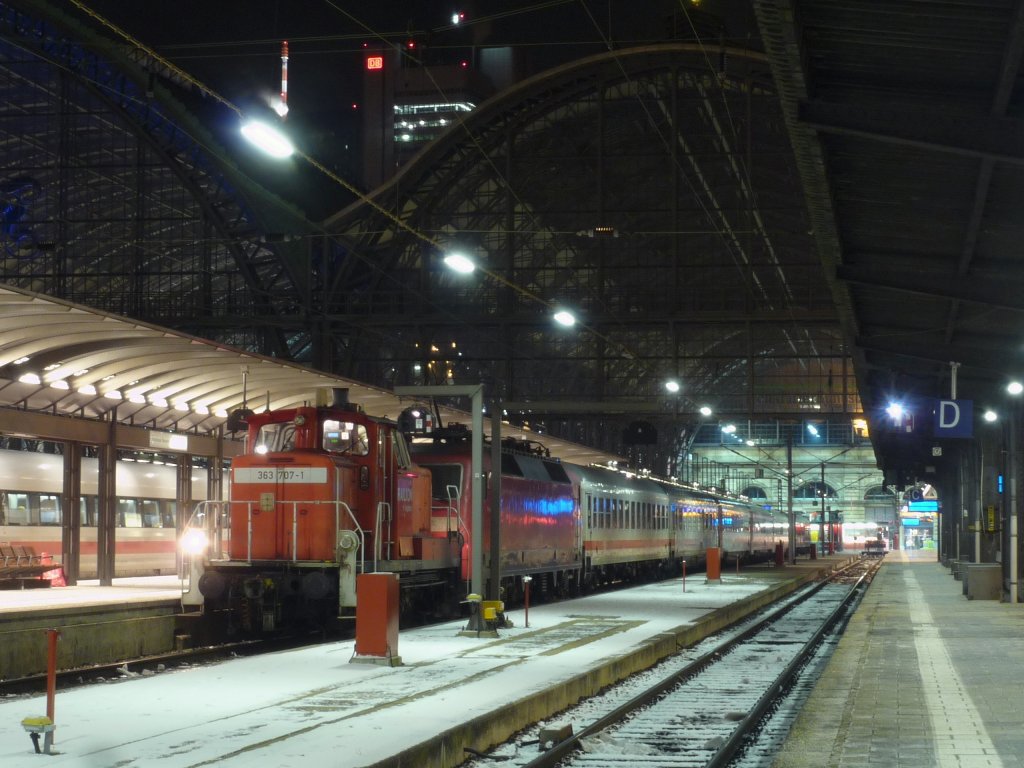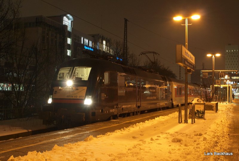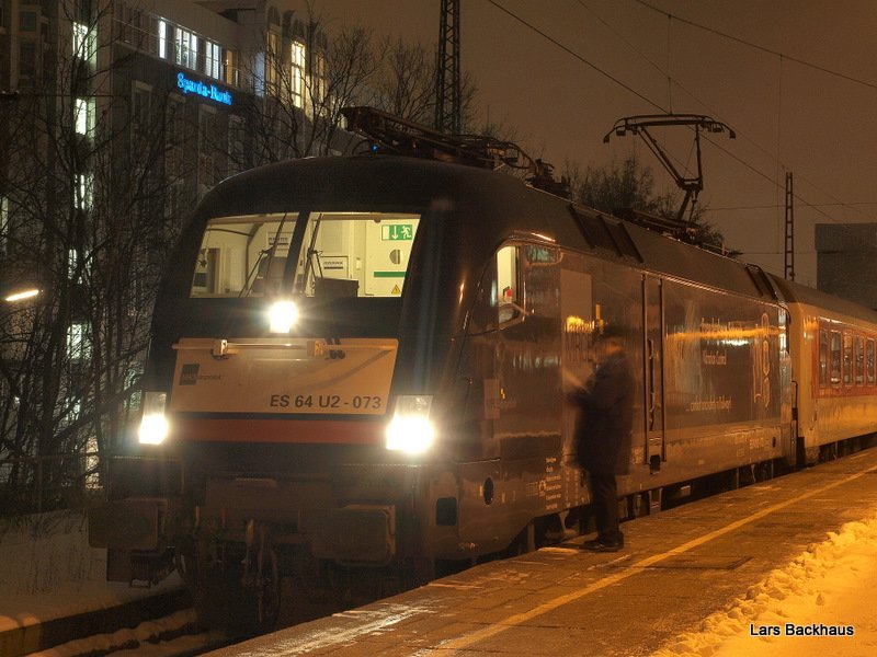 Legal schwarz fahren hieß es am 15.01.10 in Hamburg-Altona. Auf Gleis 12 steht ES 64 U2-073 "Freudenberger Schwab" mit CNL 479 nach Brig.