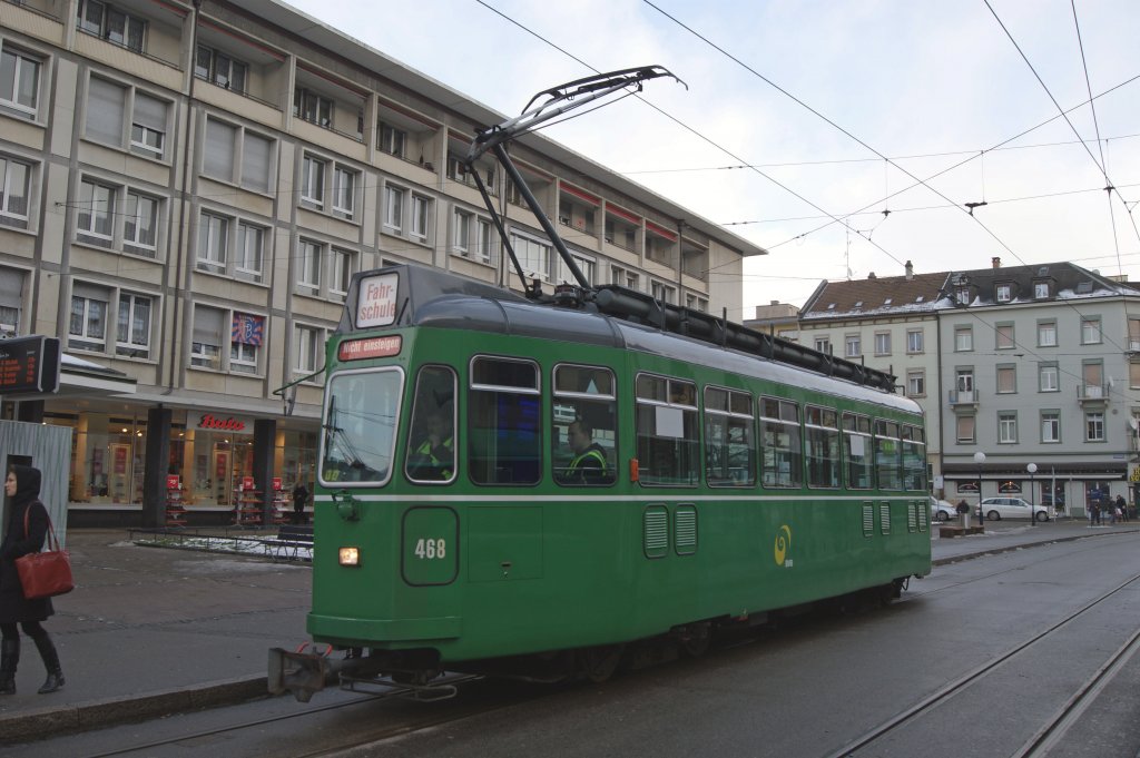 Be 4/4 mit der Betriebsnummer 468 als Fahrschulwagen an der Haltestelle Claraplatz. Die Aufnahme stammt vom 14.01.2010.