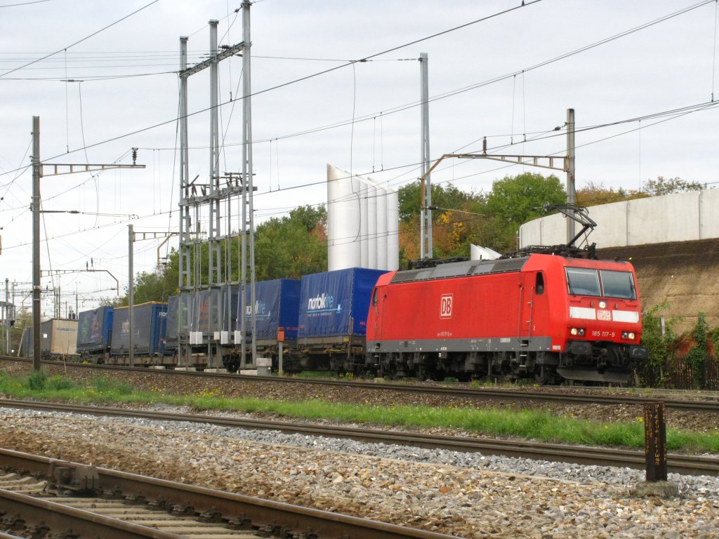 BR 185 117 mit KLV-Zug bei Pratteln am 26.10.2009