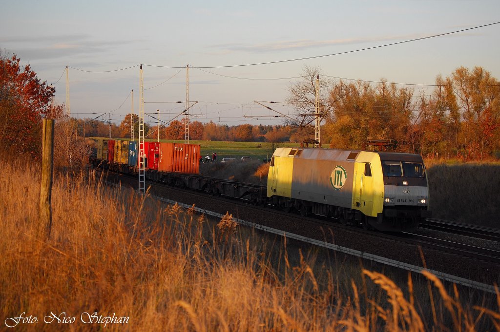 Direkt im Block nach der ITL 152 901-5,kam die Schwestermaschine 152 902-3 mit einem Containerzug hinterher gejagt,Bü 72 bei Priort (07.11.09)