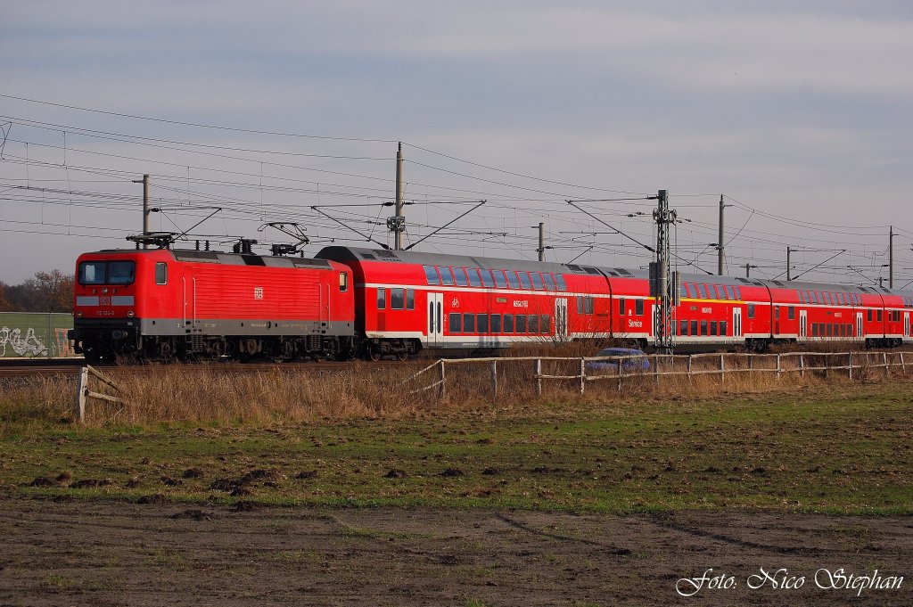 Für 112 124-3 mit RE 38168 Cottbus Hbf. - Rathenow kam sogar die Sonne raus,bei Dallgow-Döberitz (14.11.09) - Bild wurde bewusst abgeschnitten