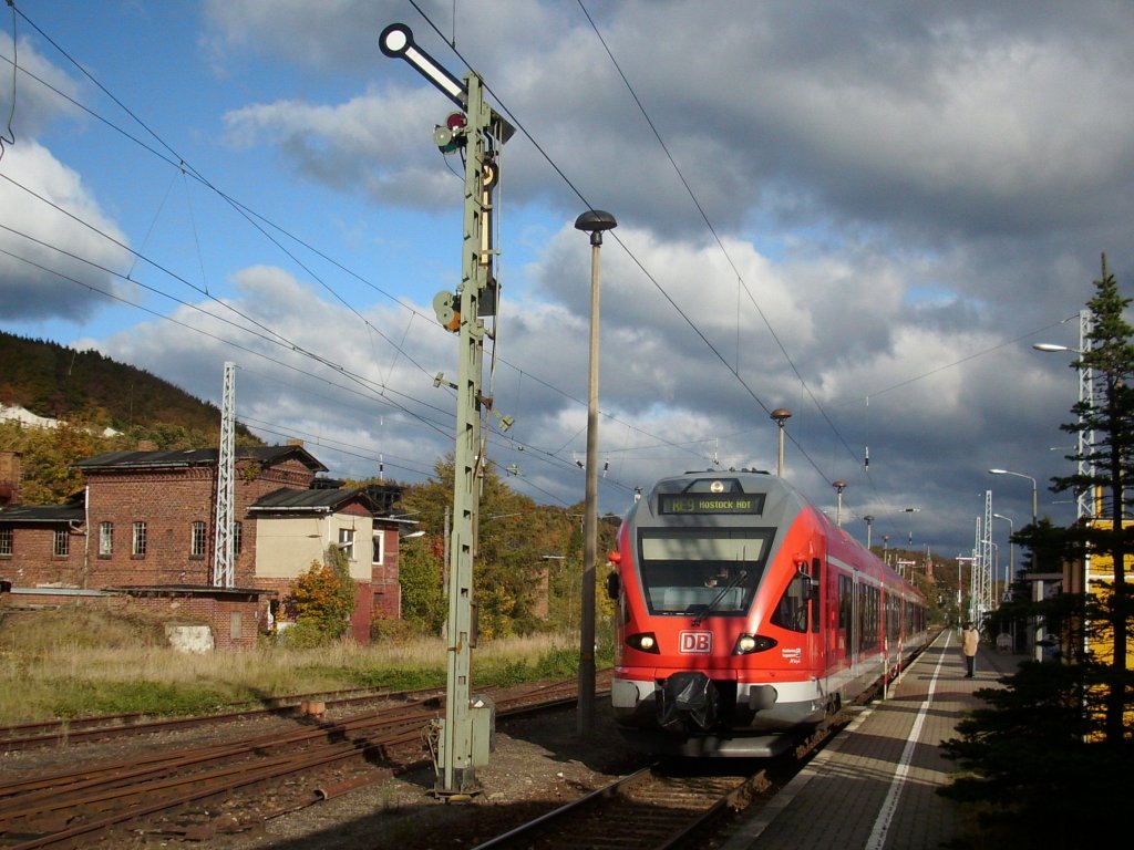 Heute das gewohnte Bild in Sassnitz.Ausfahrender Flirt 429 027 als RE 33216 Sassnitz-Rostock am 14.Oktober 2009.