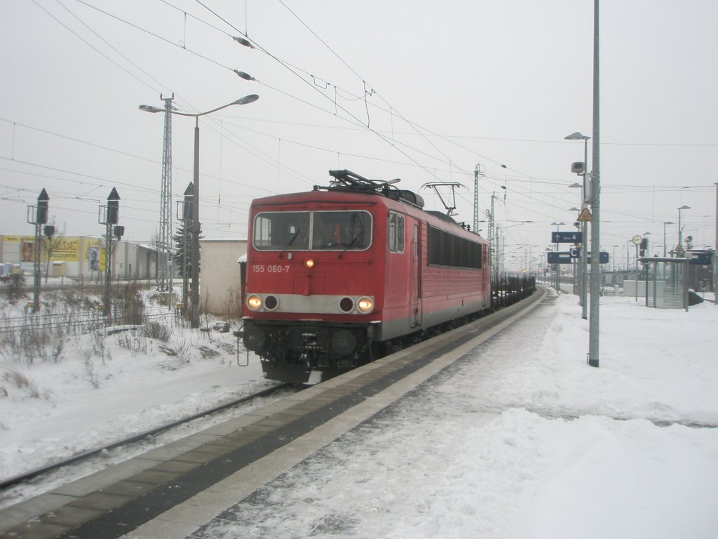 Zum Tagesabschluss gab es noch 155 159-7 mit einem Kesselzug auf dem Weg zur Ostsee,Bü 72 bei Priort (07.11.09)