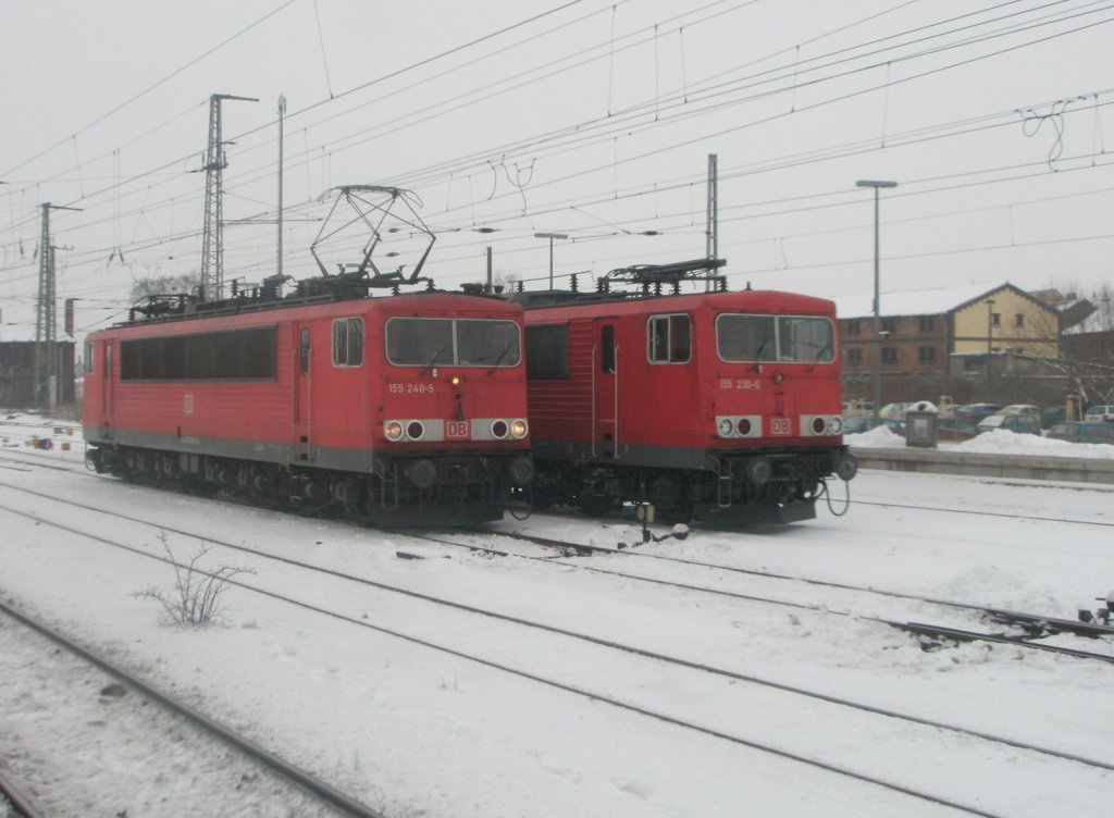 Hier links 155 240-5 und rechts 155 230-6, diese beiden Loks standen am 15.1.2010 in Angermünde.