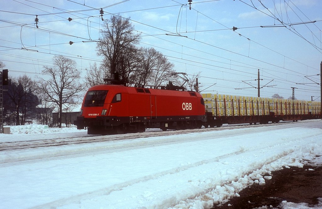 1116 133-8 (ÖBB) fährt am 23. Januar 2010 um 14:11 Uhr mit einem Güterzug durch Düsseldorf Rath