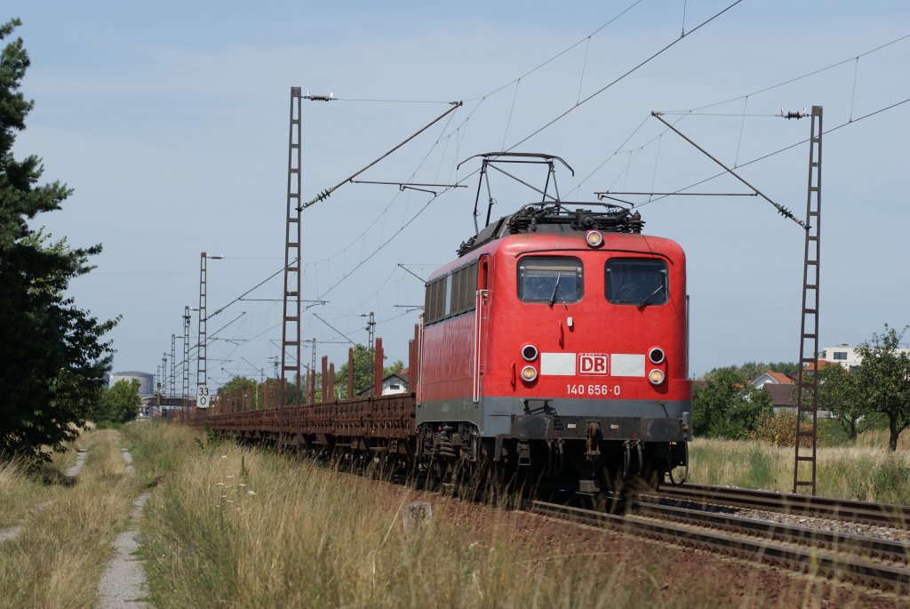 140 656-0 mit Rungenwagen in Wiesental am 22.07.09