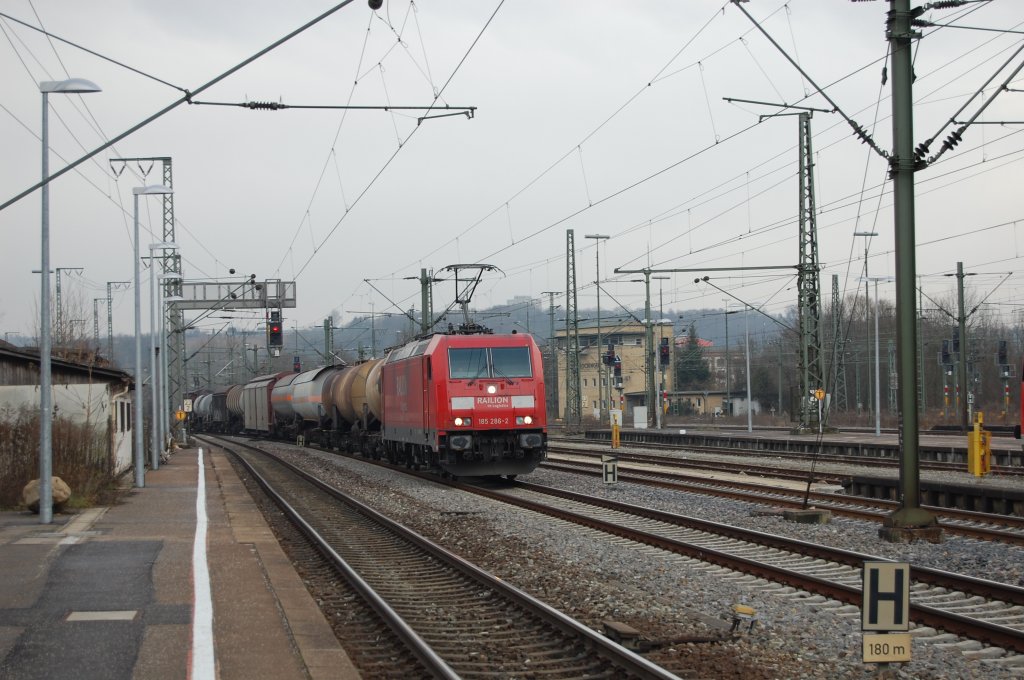 Das für mich definitiv schönste Weihnachtsgeschenk am heiligen Abend 2009 (24.12.2009) war 185 286-2, welche einen kurzen gemischten Güterzug - vermutlich Richtung Kornwestheim - durch Plochingen schleppte.