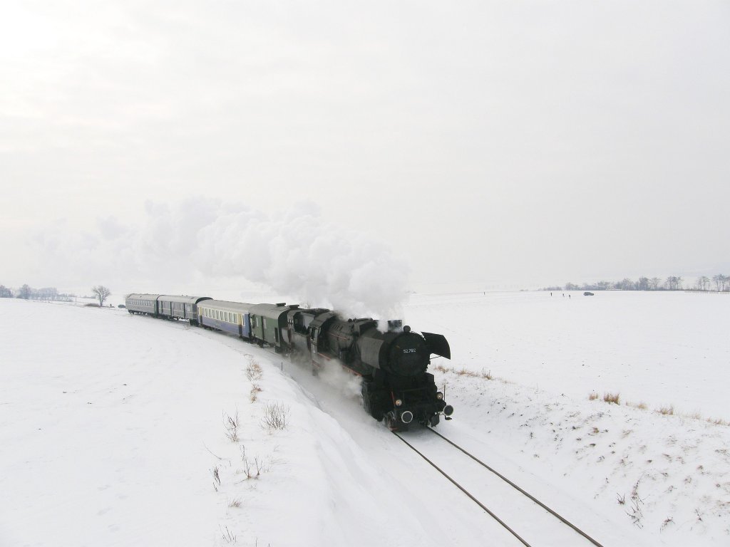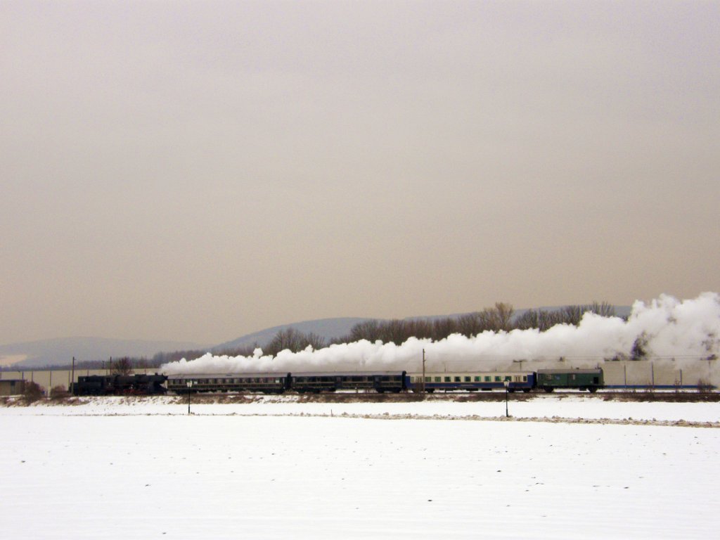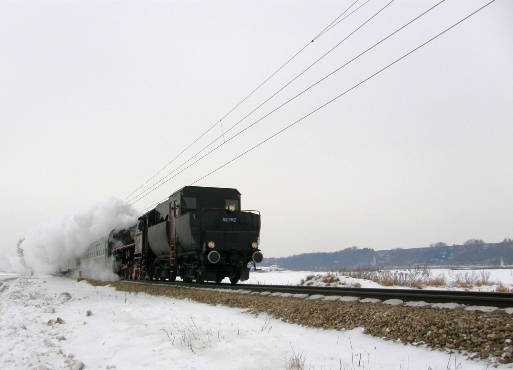 Die 52.7612 bespannt den Sonderzug der Landesbahn von Wien Heiligenstadt nach Ernstbrunn. Wien Nußdorf, 23.1.2010