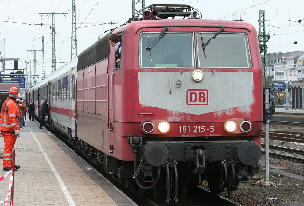 Die 181 215-5 hat ihren IC soeben von Luxemburg nach Koblenz HBF gezogen, nun wird am anderen Ende des Zuges eine BR101 angehangen, leider hat diese 181er länger keine Waschanlage gesehen, aufgenommen am 23.01.2010