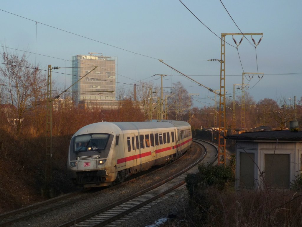 Ausfahrt des ICE 278 aus Interlaken Ost zur Weiterfahrt nach Berlin Ostbahnhof. Abgelichtet in Karlsruhe, am 16.01.10, bei winterlichen Temperaturen.