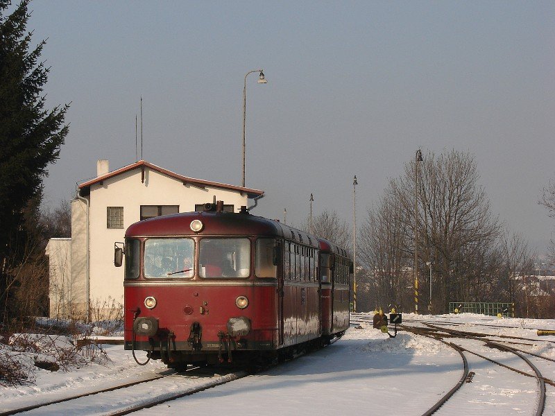 Hier befindet sich 99 771 mit ihrem Zug im oberen Teil von Neudorf unterhalb des Skihanges. Auch hier bieten sich hervorragende Wintersportbedingungen.