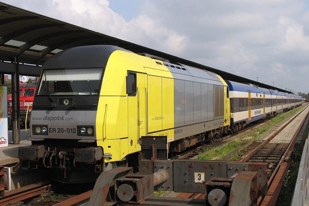 ER 20-012 der Nord-Ostsee-Bahn (NOB) mit NOB 80601 Westerland (Sylt)-Hamburg Altona auf Bahnhof Westerland (Sylt) am 23-6-2007.