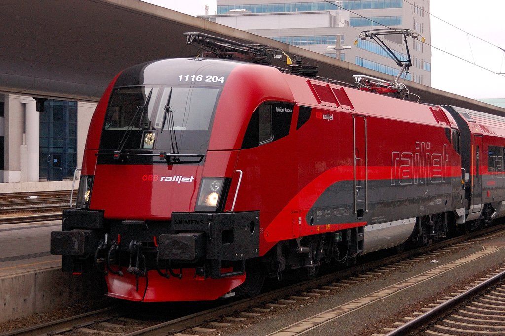 ... "der Geist von Österreich... Spirit of Austria" railjettet über die Schienen Europas. 1116 204 im Lokportrait. (Linz, anno 09).