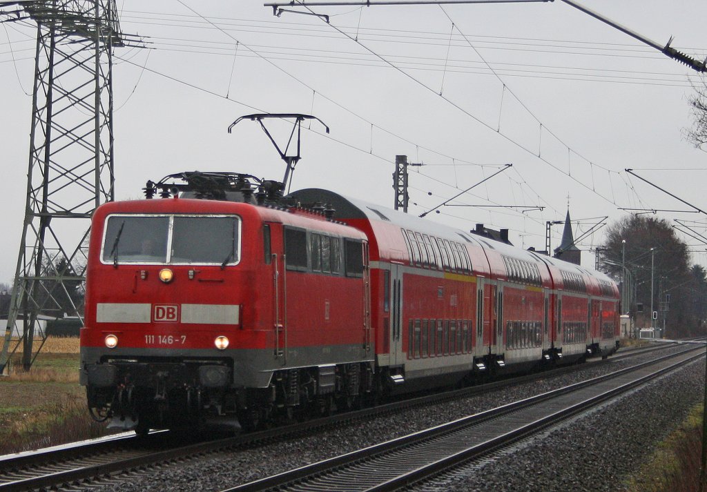 111 146 mit dem RE10414 nach Aachen an der ehem. Anrufschranke in Geilenkirchen 29.1.10