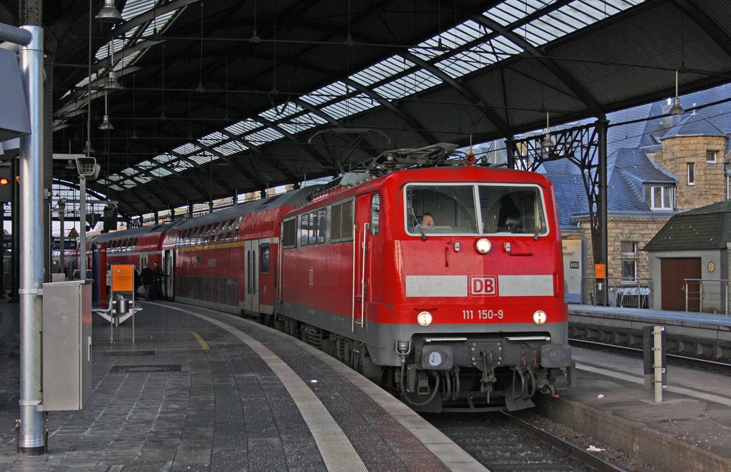 111 150 mit dem RE1 nach Hamm in Aachen Hbf, wie man dem Tf ansieht hätte er wohl lieber Plan-Bespannung mit einer 146.0 gehabt ;-) 27.12.09
