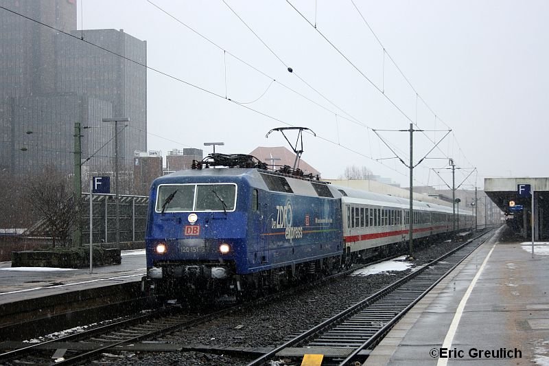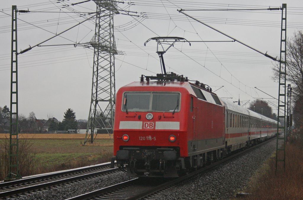 IC 1918 mit 120 118 nach Berlin Südkreuz an der ehem. Anrufschranke in Geilenkirchen 29.1.10