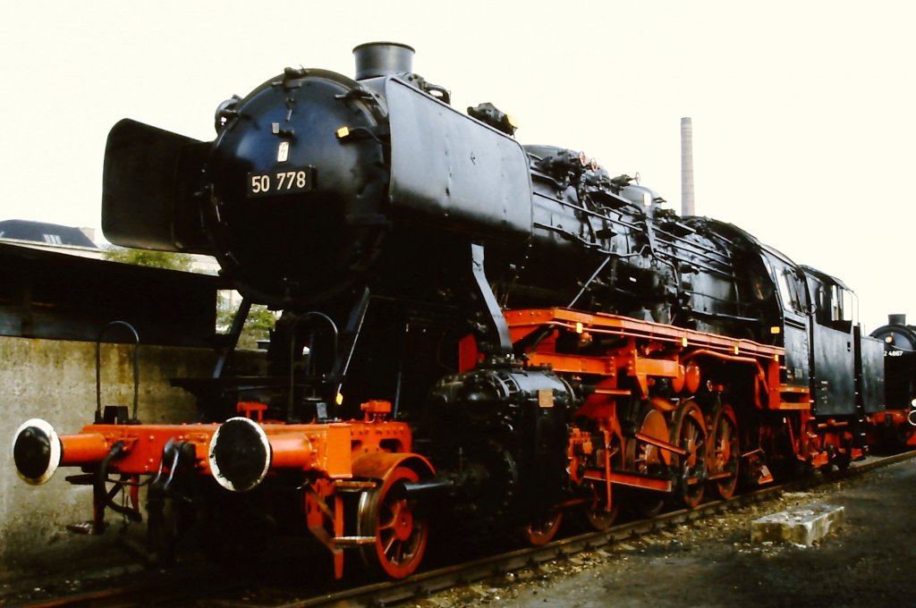 50 779 auf der Fahrzeugschau "150 Jahre deutsche Eisenbahn" vom 3. - 13. Oktober 1985 in Bochum-Dahlhausen.