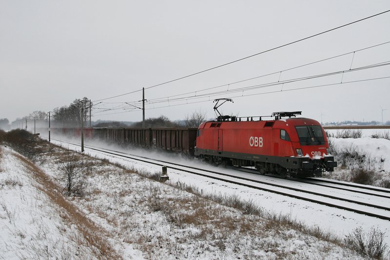 6.1.10 Ein Alltagsbild auf der Nordbahn im Winter sind die Rübenbomber. Nach dem ersten Schneefall natürlich ein Grund mit der Kamera auszurücken! Heute war die 1016 041 mit dem LGAG 59122 von Siebenbrunn Leopoldsdorf nach Hohenau unterwegs.