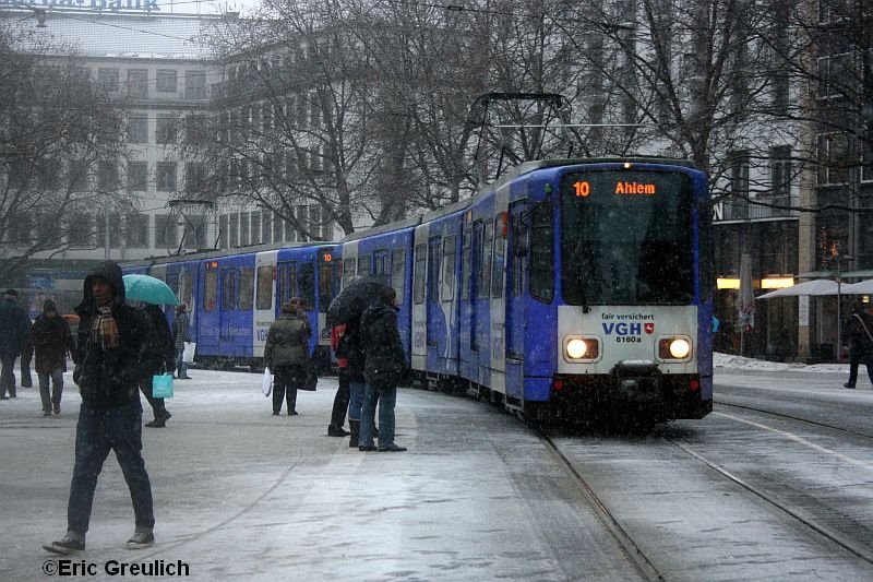 Jena: Straßenbahnlinie 3 nach Jena-Ost an der Haltestelle Stadtzentrum.(28.1.2010)