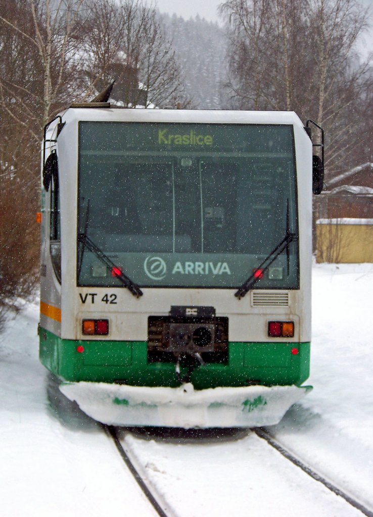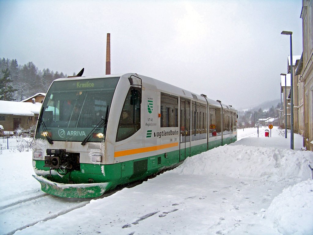 654 042 (VT42) als VBG83111 in Klingenthal, 29.1.010. Ich finde, der Tw hat ein schönes winterliches Gesicht:), was ihm in Zwickau aber sicherlich nicht nützlich sein wird...