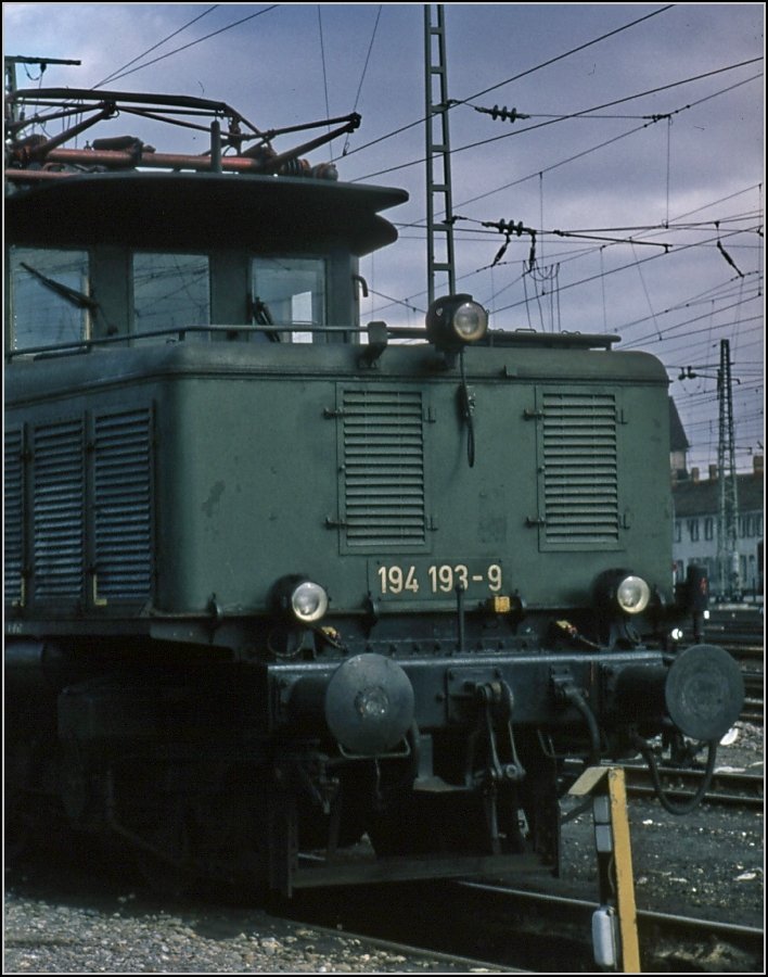 E 52, hergerichtet als bayerische EP 5, auf der Fahrzeugschau "150 Jahre deutsche Eisenbahn" vom 3. - 13. Oktober 1985 in Bochum-Dahlhausen.