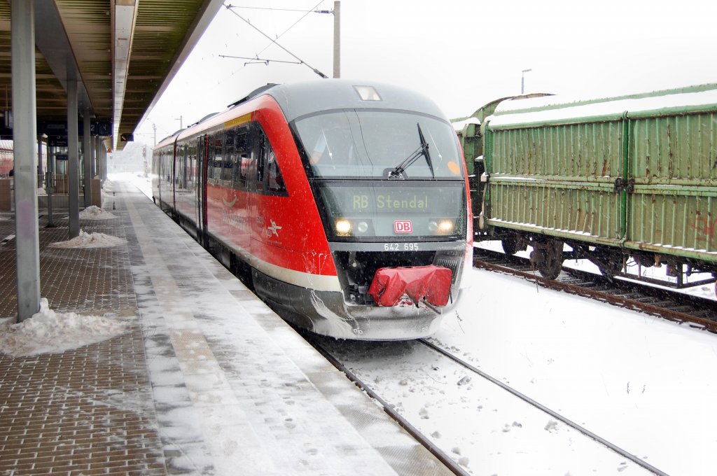 Die RB 642 695 steht hier in Rathenow und warte auf die Abfahrt nach Stendal. Am 09.01.2010