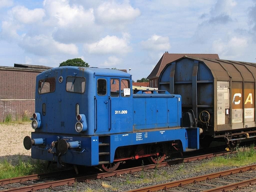Heute drei verschiedene Variante der BR 311 (die ehemalige BR 101 der DR). Hier ist die 311.009 (ex-DR 101 535, Baujahr 1963, LKM Babelberg) der CFL Cargo zu sehen auf Bahnhof Niebüll am 22-6-2007.