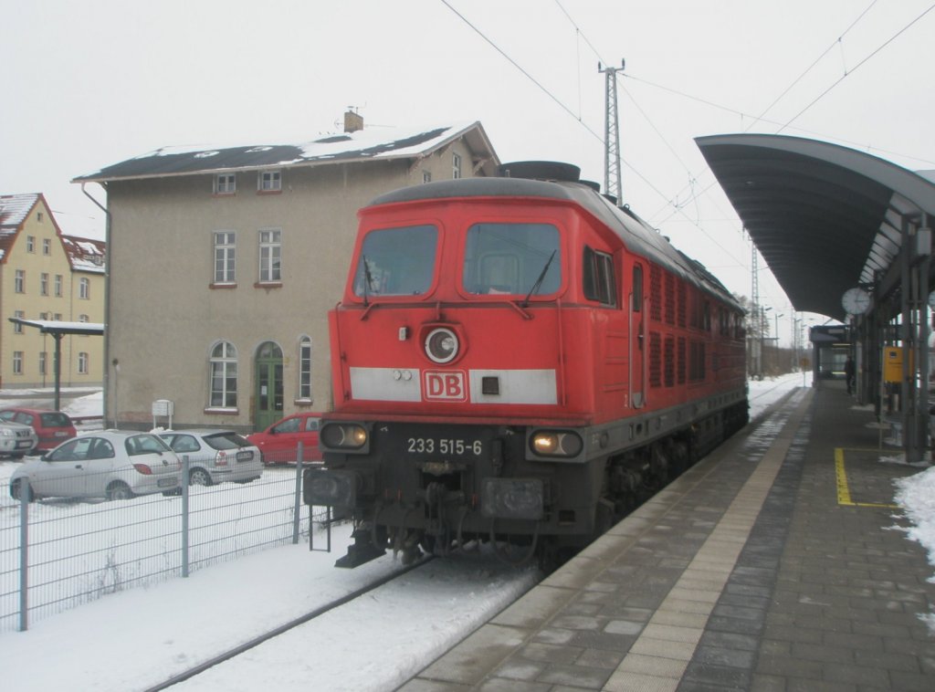 Hier 233 515-6, bei der Durchfahrt am 29.1.2010 durch Angermünde.