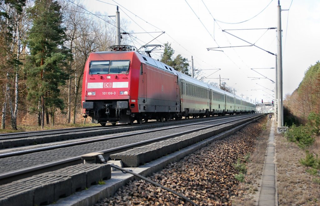 Hier zieht die 101 106-3 den IC nach Berlin Ostbahnhof kurz nach dem halt in Rathenow am 20.03.2009