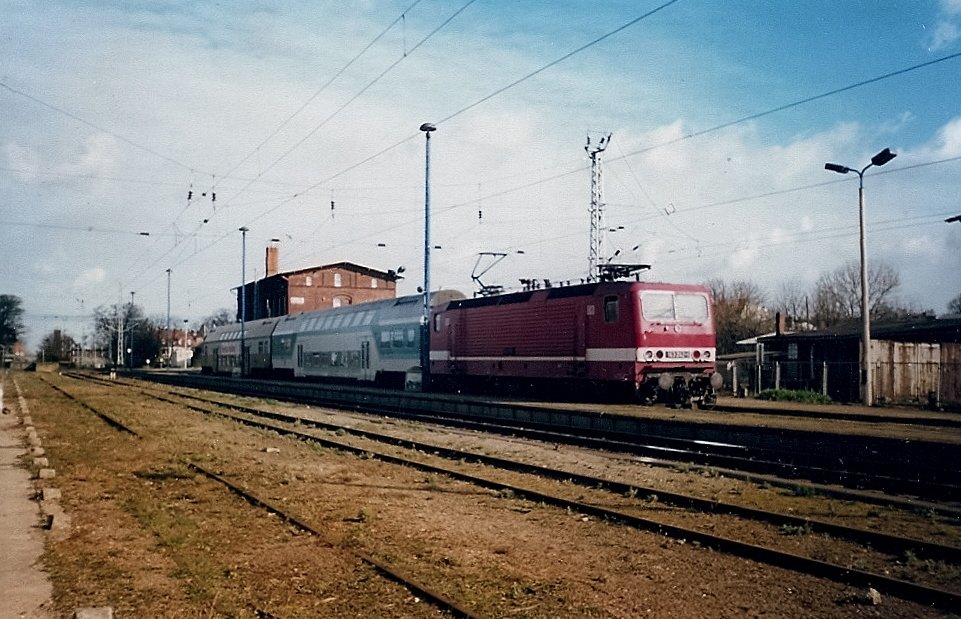 Im April 1997 gab es in Barth noch eine Menge das Heute Geschichte ist.So gab es noch umfangreiche Gleise,die Strecke war noch elektrifiziert,die Regionalbahnzügen fuhren noch als Dostos,die 143 242 fuhr noch im Norden das Alles hat sich nach der Übernahme der UBB geändert.