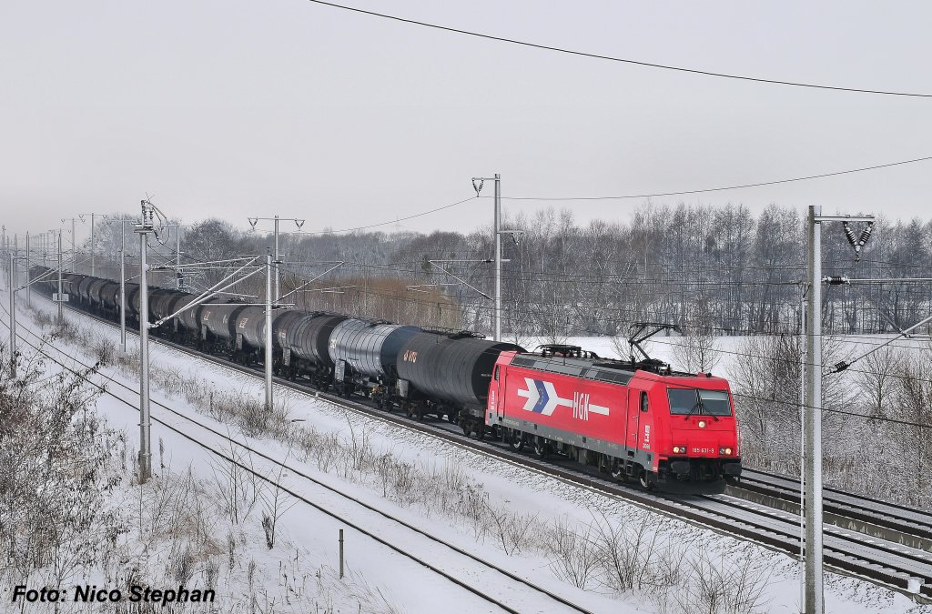 Im Bahnhof von Elstal gab es zum Tagesabschluss noch die zu HGK gehörende 185 631-9 mit einem Kesselzug abzulichten,Elstal (20.01.10)