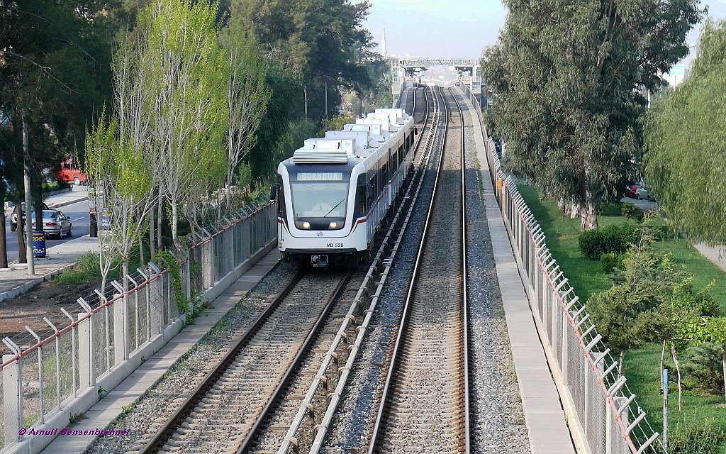3-Wagen-Garnitur (Standard in Izmir) geführt von MD528 unterwegs zwischen Stadyum und Sanayi in Richtung Bonova.