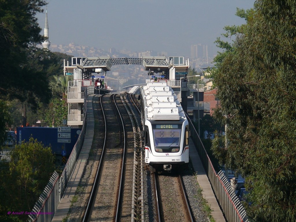 3-Wagen-Garnitur (Standard in Izmir) MD506+MD+MD513 unterwegs zwischen Sanayi und Stadyum in Richtung Ücyol.