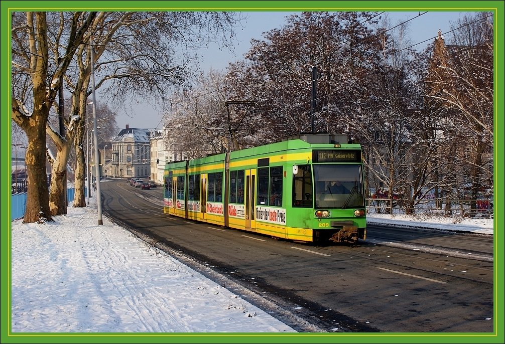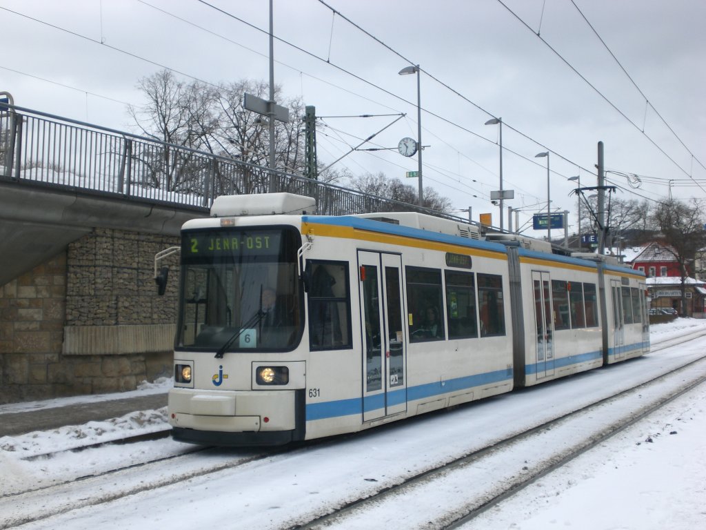 Jena: Straßenbahnlinie 2 nach Jena-Ost am Paradiesbahnhof.(28.1.2010)