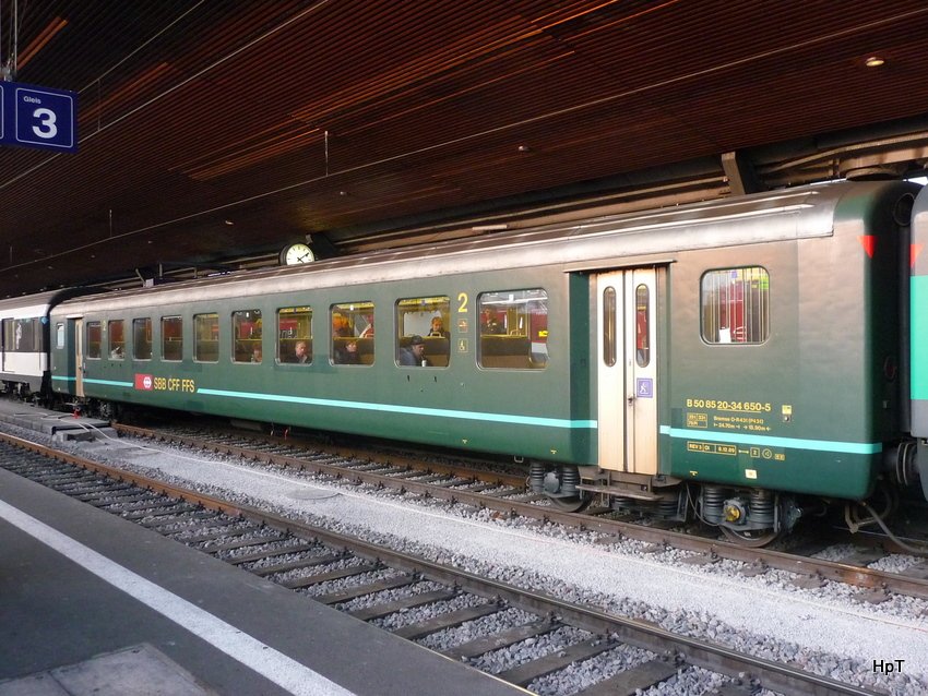 SBB - Personenwagen 2 Kl. B 50 85 30-34 650-5 im Hauptbahnhof Zürich am 18.12.2009