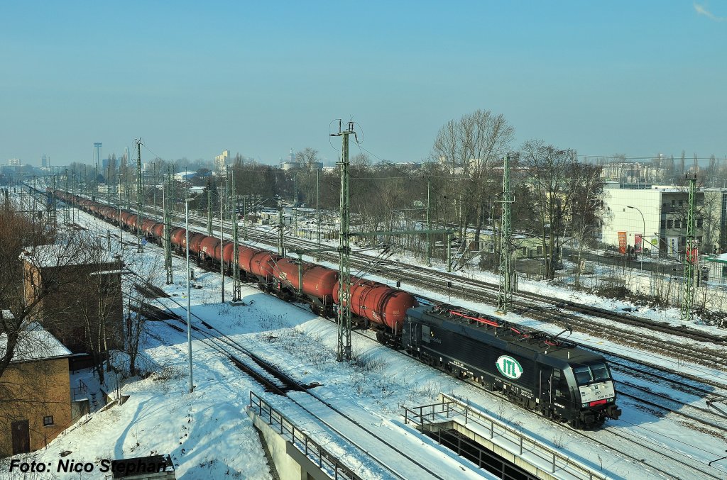 Das Highlight des Tages,der erwartete Lokzug nach Polen: PKP 183 603-6,183 604-8 & ES 64 F4-151 als Tfzf 92705 Göttingen Hbf. - Frankfurt/Oder Hbf.,brettern über die NBS der Hauptstadt Deutschlands entgegen,Wustermark (20.01.10)