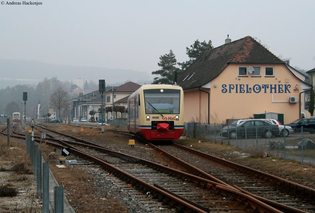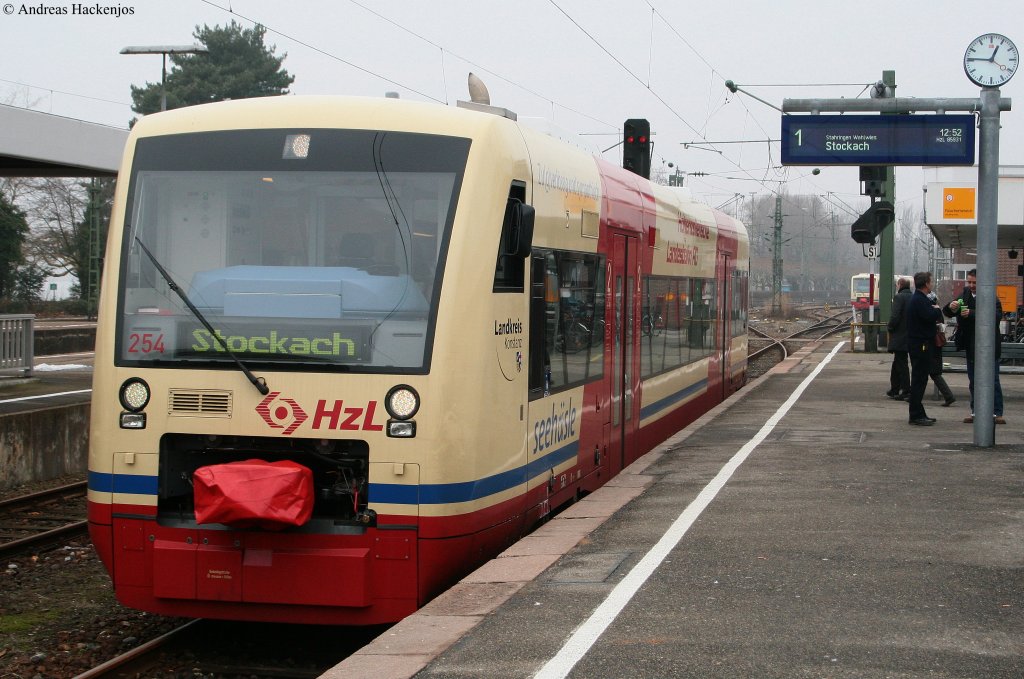 VT 254 der HzL als HzL85932 (Stockach NE-Radolfzell) in Stockach 24.1.10