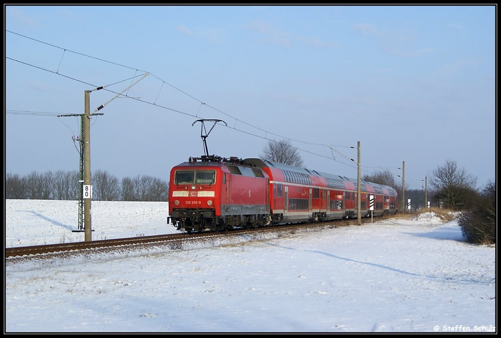 120 156 mit dem EC kurz vor dem Bf Stralsund am 03.01.2010