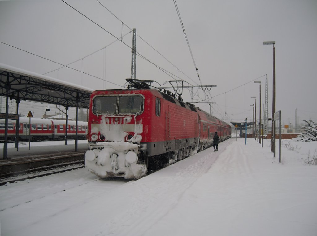 Hier die in Mönchengladbach stehende vereiste 146 021-1 als Schub bzw. Zuglok des RE2 Dostoparks zu sehen, dieser endete hier. Aufnahmedatum: 05.01.10 Aufnahmezeit: 17:43