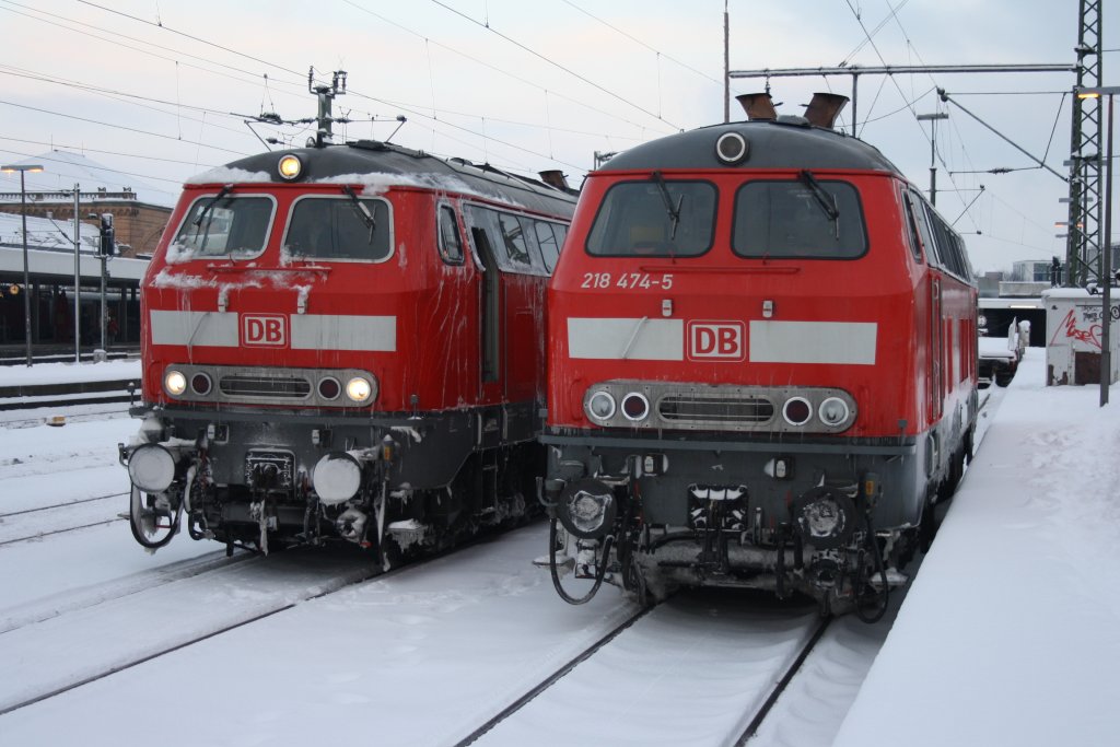 218 447 steht mit dem Schülerzug am ex Güterbahnhof von Goslar (2.1.10)