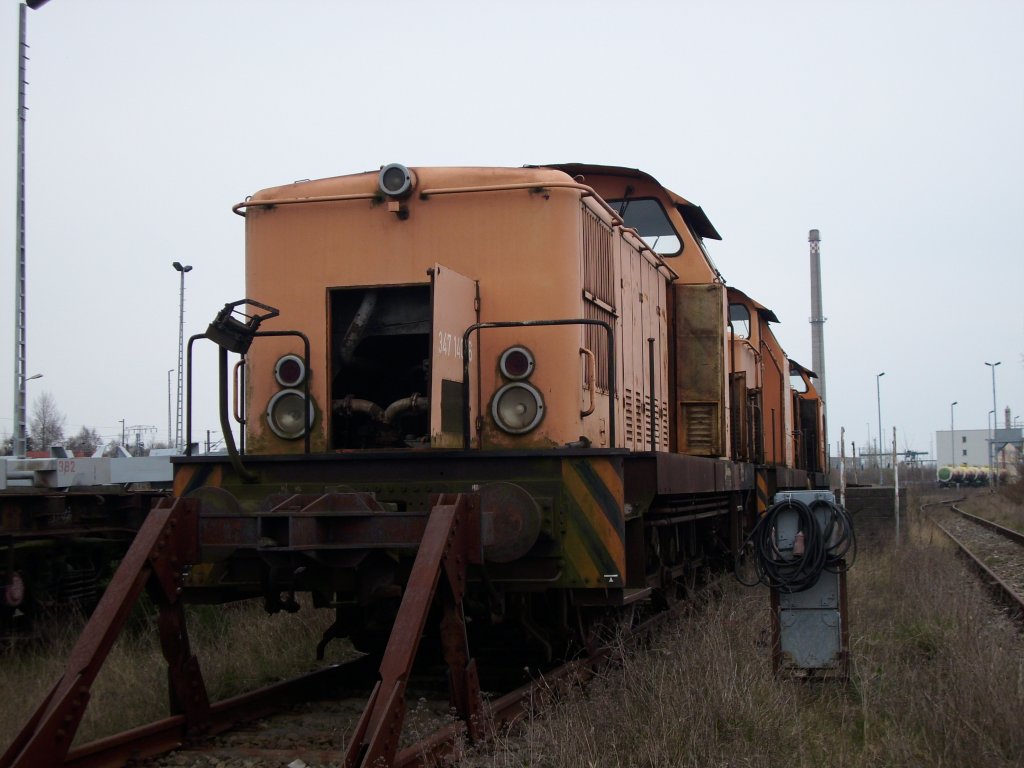 347 140 am 14.April 2008 steht seit Jahren in Mukran ohne Zukunft.Ähnlich wie die abgestellten 232er von Mukran werden auch die drei abgestellten 347er in der Lokstatistik noch unter z-gestellt geführt.