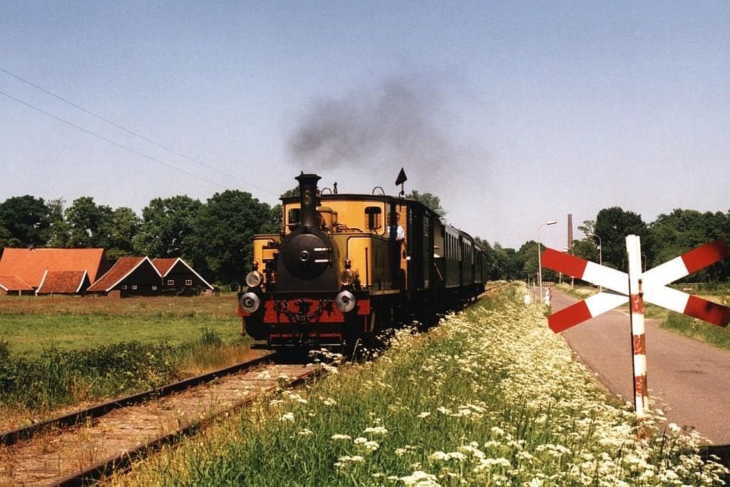 5 (MBS) mit Dampfzug Boekelo-Haaksbergen bei Boekelo am 24-5-2001. Bild und scan: Date Jan de Vries.