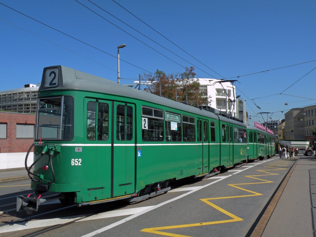 Am 15.08.2009 feierte man 75 Jahre Tram nach Binningen. Auch eine Doppeltraktion mit den beiden Düwag 624 und 652 war auf der Linie 2. Hier hält er an der Haltestelle Markthalle.