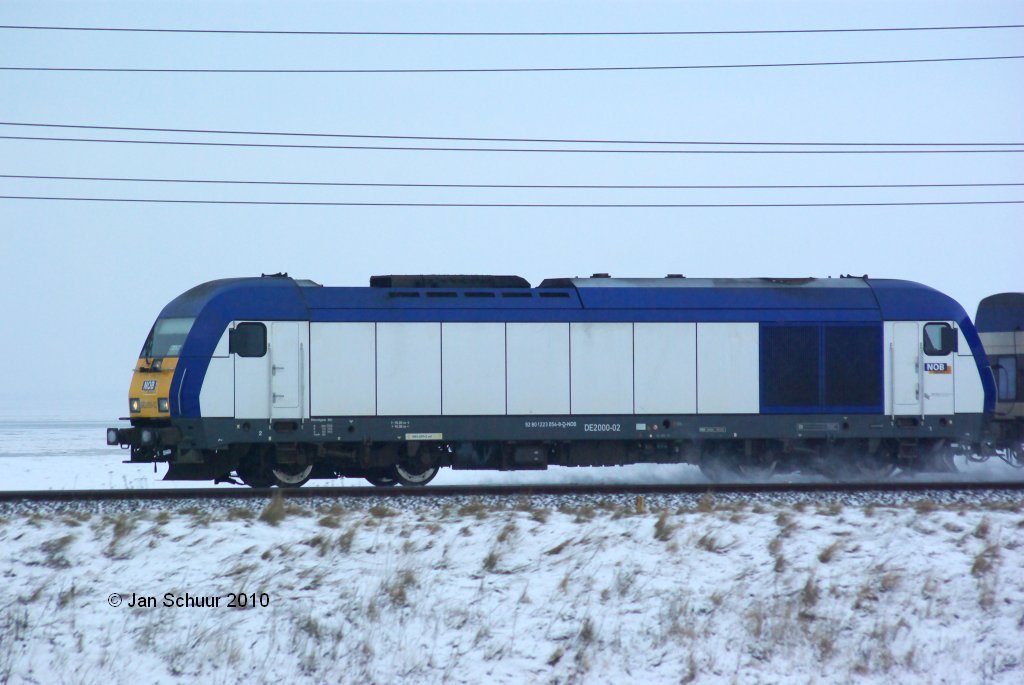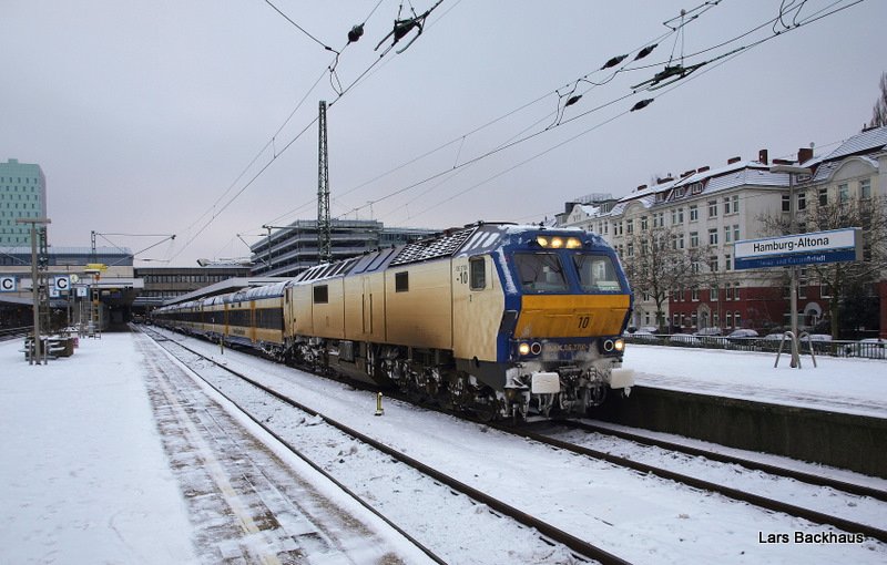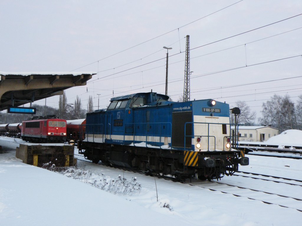 Am 4.1.10 legte die V100-SP-009 (ex DB 203-129) einen kurzen Stop in Elze ein. Nachdem der vorgefahrene Metronom den nächsten Streckenblock frei machte, fuhr sie Lz gen Süden auf dem Gegengleis weiter.