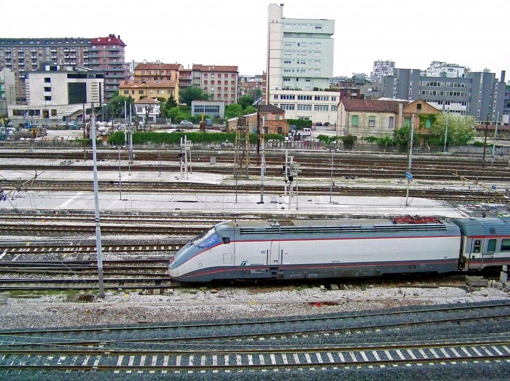 Bei ungünstigen Lichtvehältnissen (dunkle Nebelwolken über Buchs/Sargans, Sonnenschein und blauer Himmel über dem Alpstein) sind diese Fotos entstanden. RJ160 nach Zürich HB steht abfahrbereit im Grenzbahnhof Buchs SG. (04.01.2010)