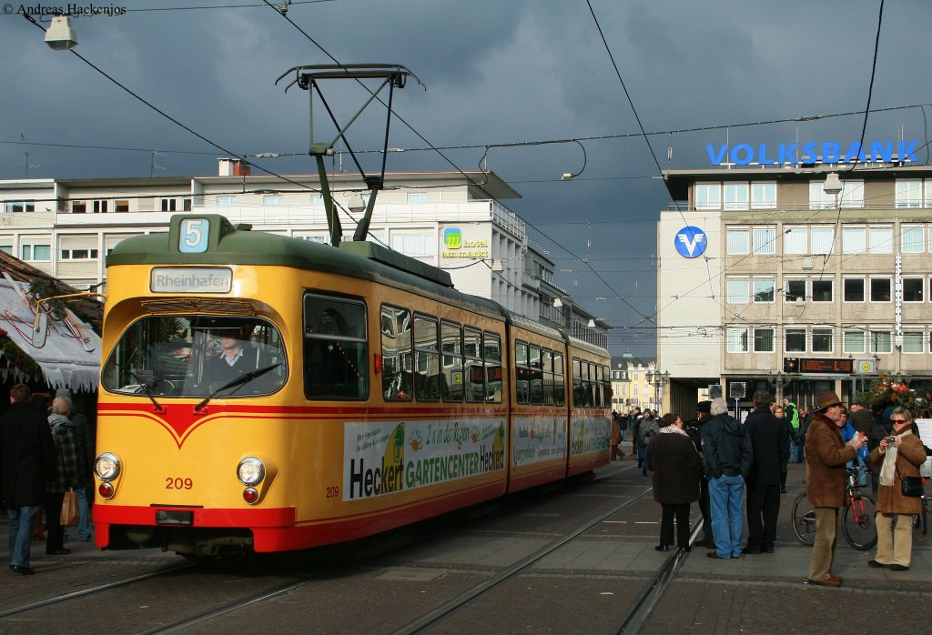 VBK 209 als 5 zum Rheinhafen am Marktplatz 13.12.09