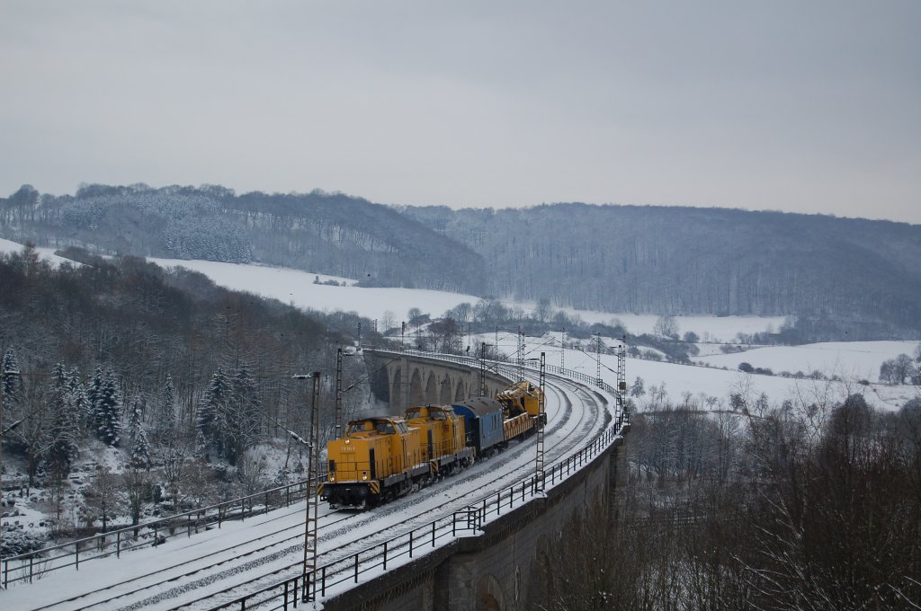 V 100 1041 der Nesa mit dem DPE 37891 (Singen (Htw)-Seebrugg) bei der Ausfahrt von Aha am 2. Januar 2010.