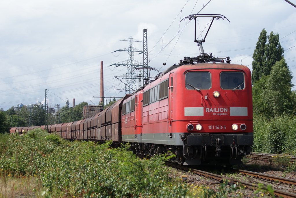 Die 151 164-1 zieht einen Kohlezug durch Köln West am 29.12.2009