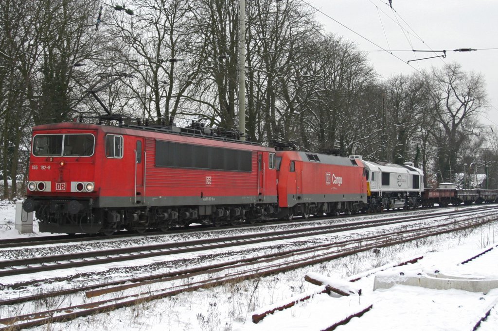 152 036 war mit einem Güterzug uaf der Fahrt von Seddin nach Seelze hieram 04.01.2010 um 12:07 in Ahlten